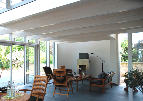 Das Ergebnis kann sich sehen lassen. Trotz seiner modernen Form fügt sich der Anbau harmonisch in die dörflich geprägte Architektur des Ortes ein. Das Dach des Altbaus wurde energetisch auf den neuesten Stand gebracht und erhielt dieselbe Ziegeleindeckung wie der Neubau.